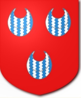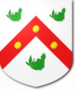 | Haye de la | ![]() | Argent three escallops, in bend, gules cottised sable | |